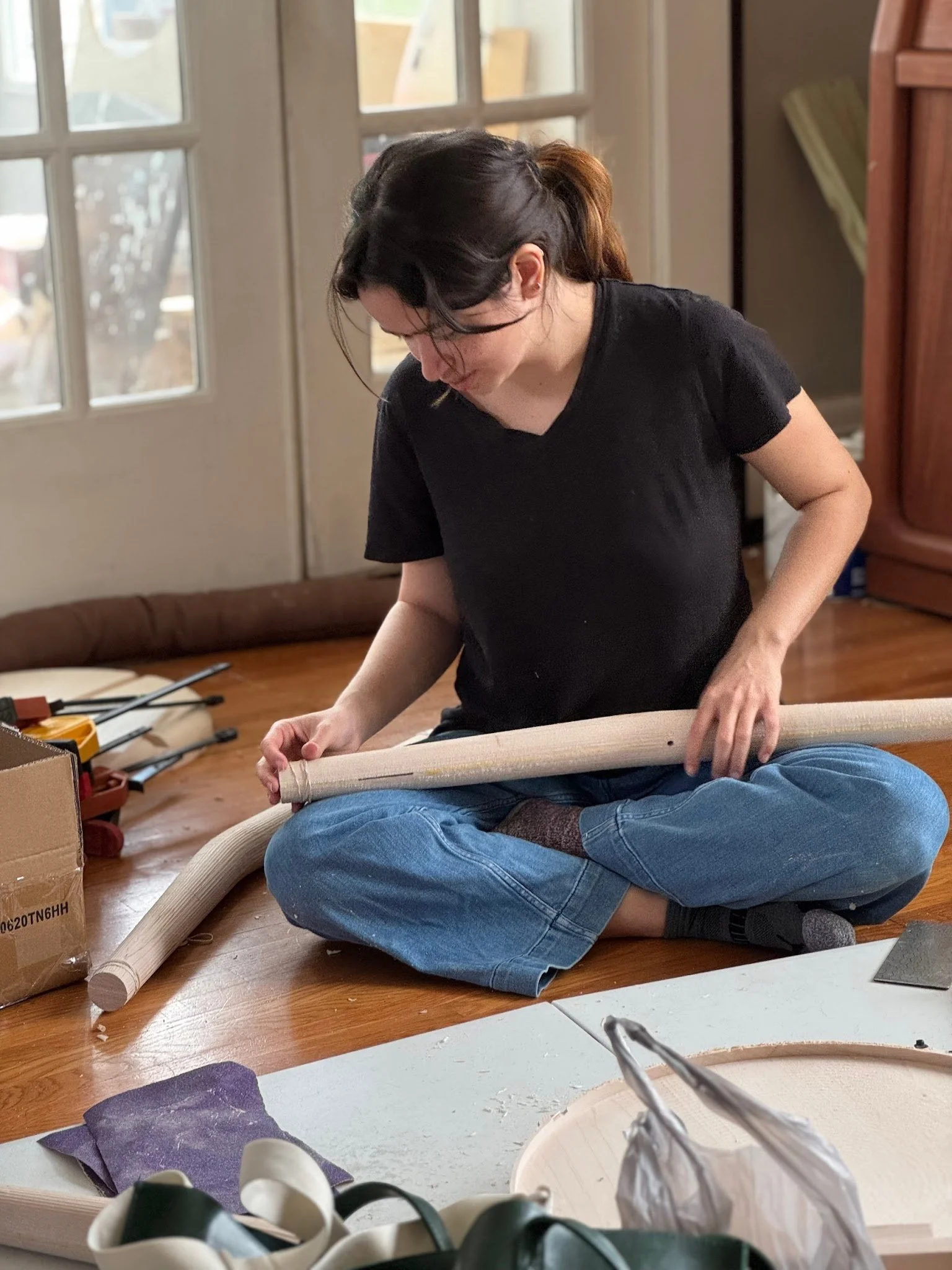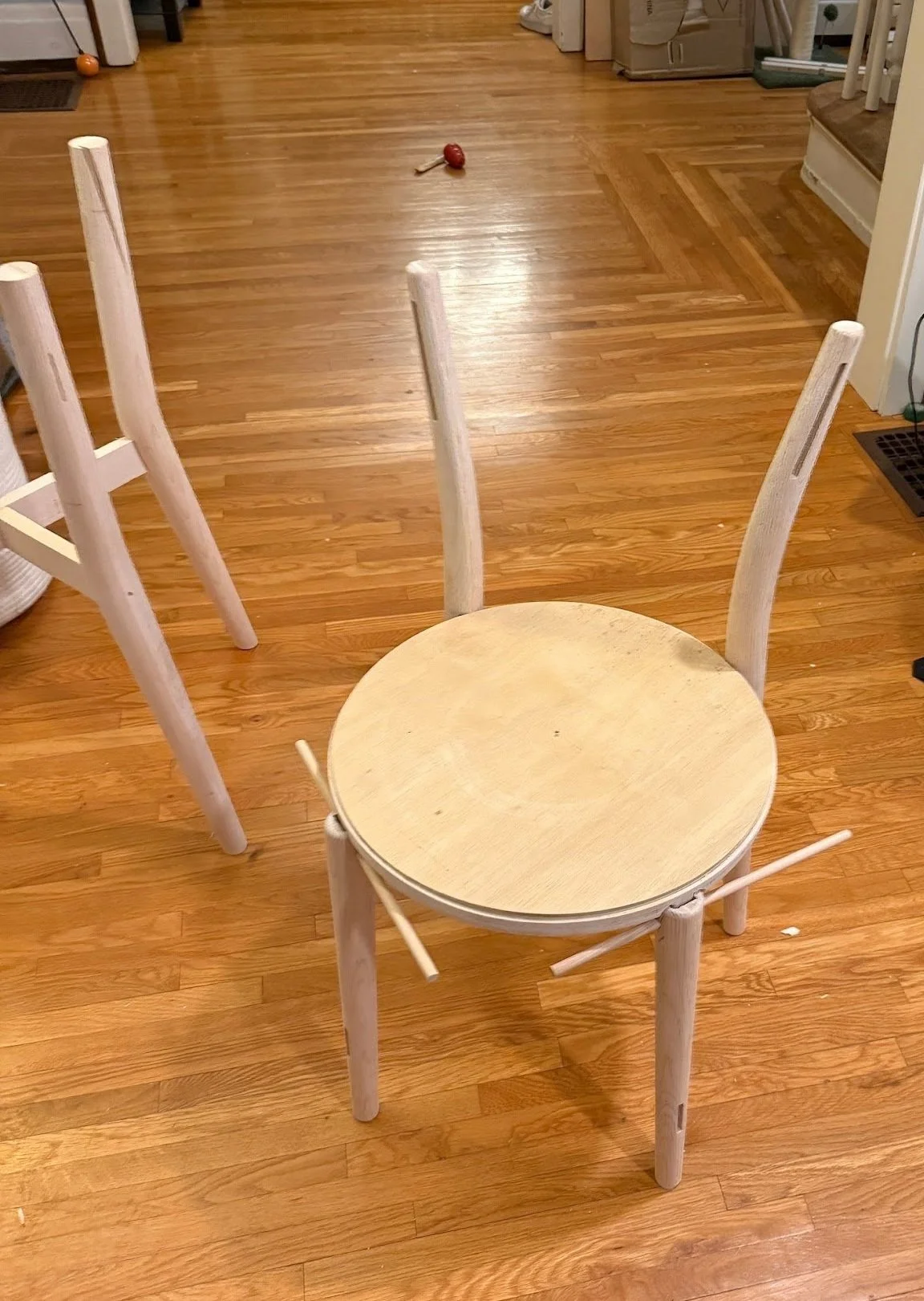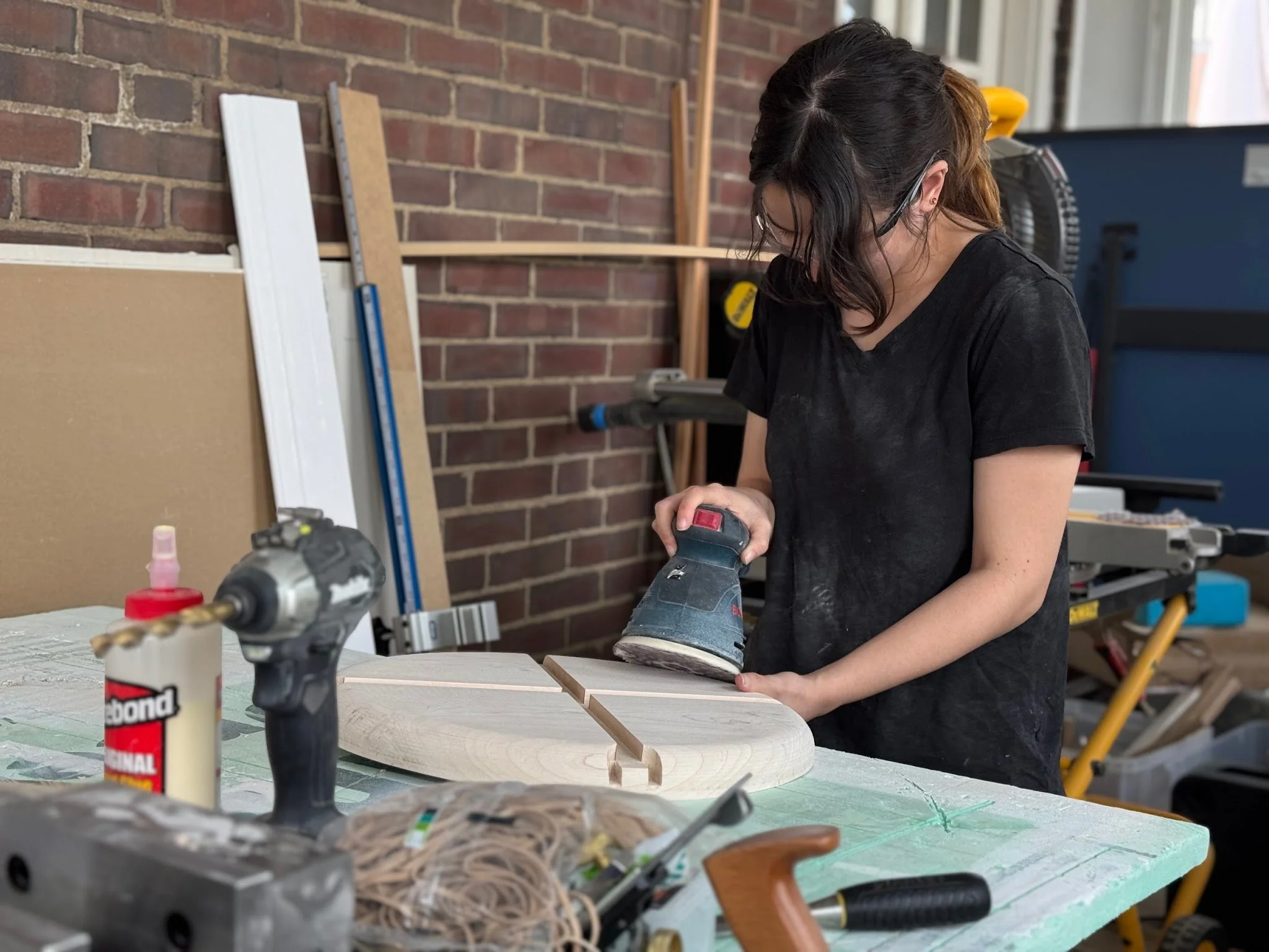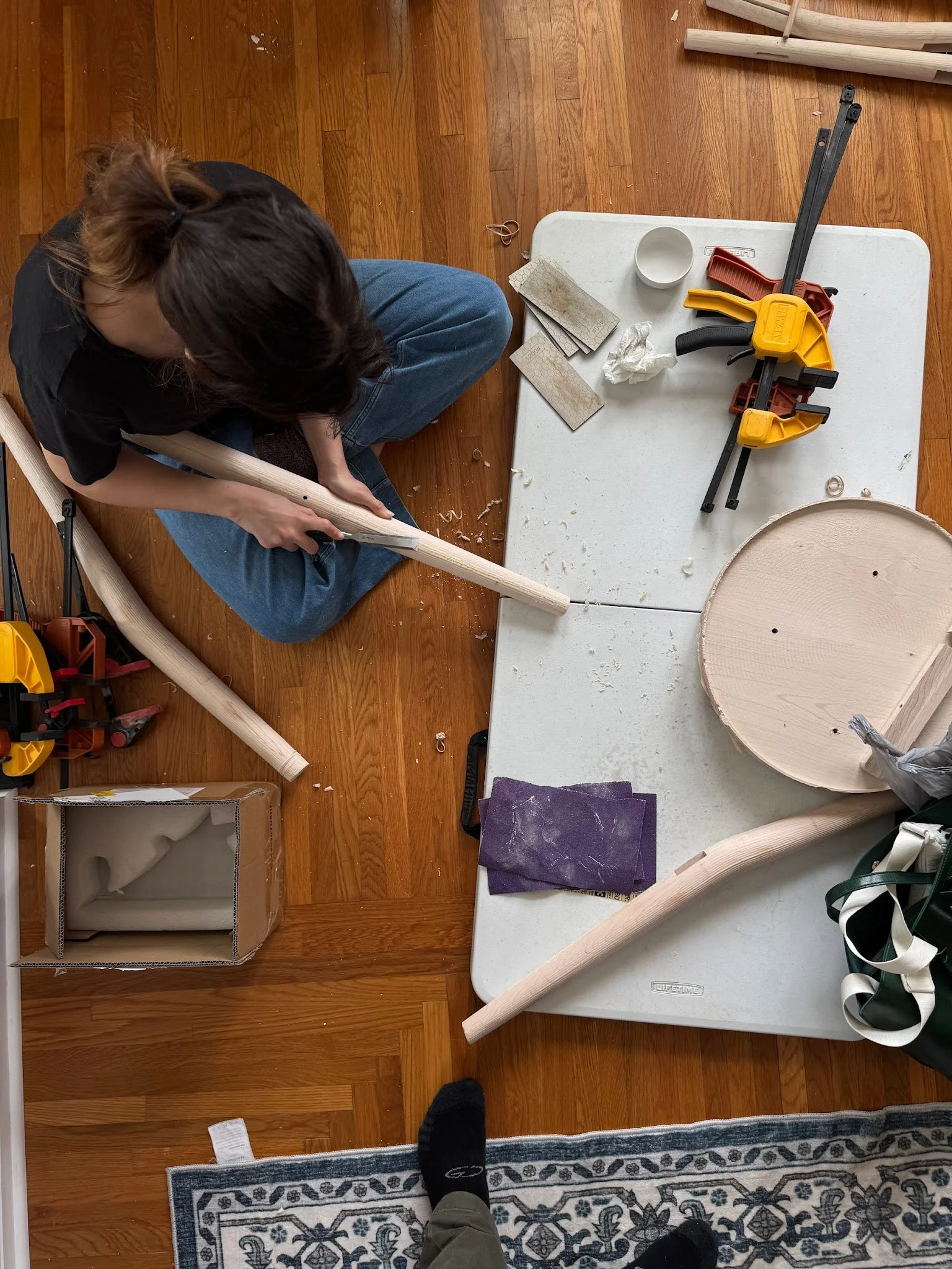 I printed a full-scale 3D model to verify proportions and practice upholstery, while planning patterns and materials. After submitting the CNC job, I moved into building, including finishing, fitting, sanding, upholstering, and installing straps with dowels, learning new skills along the way.
