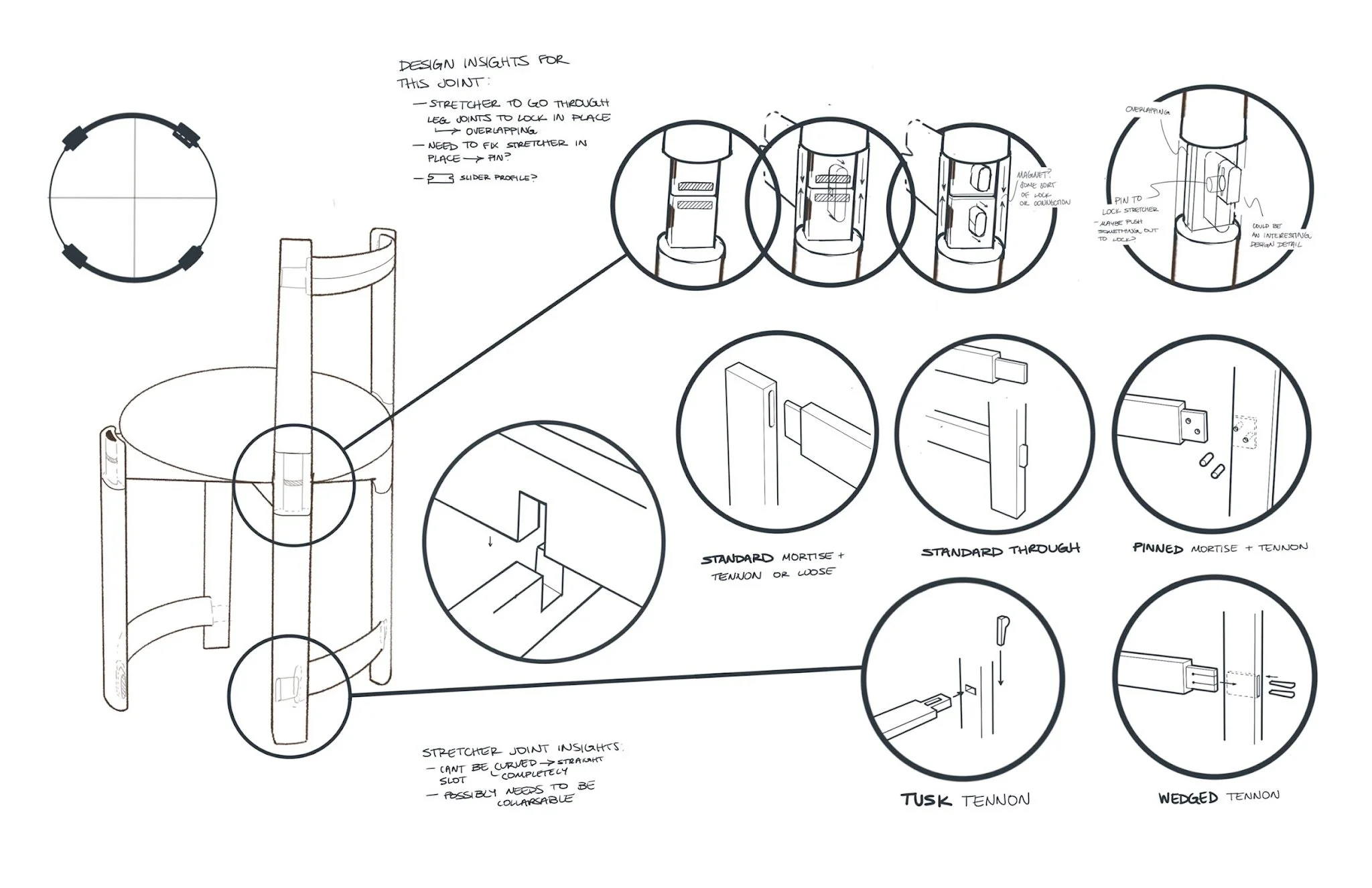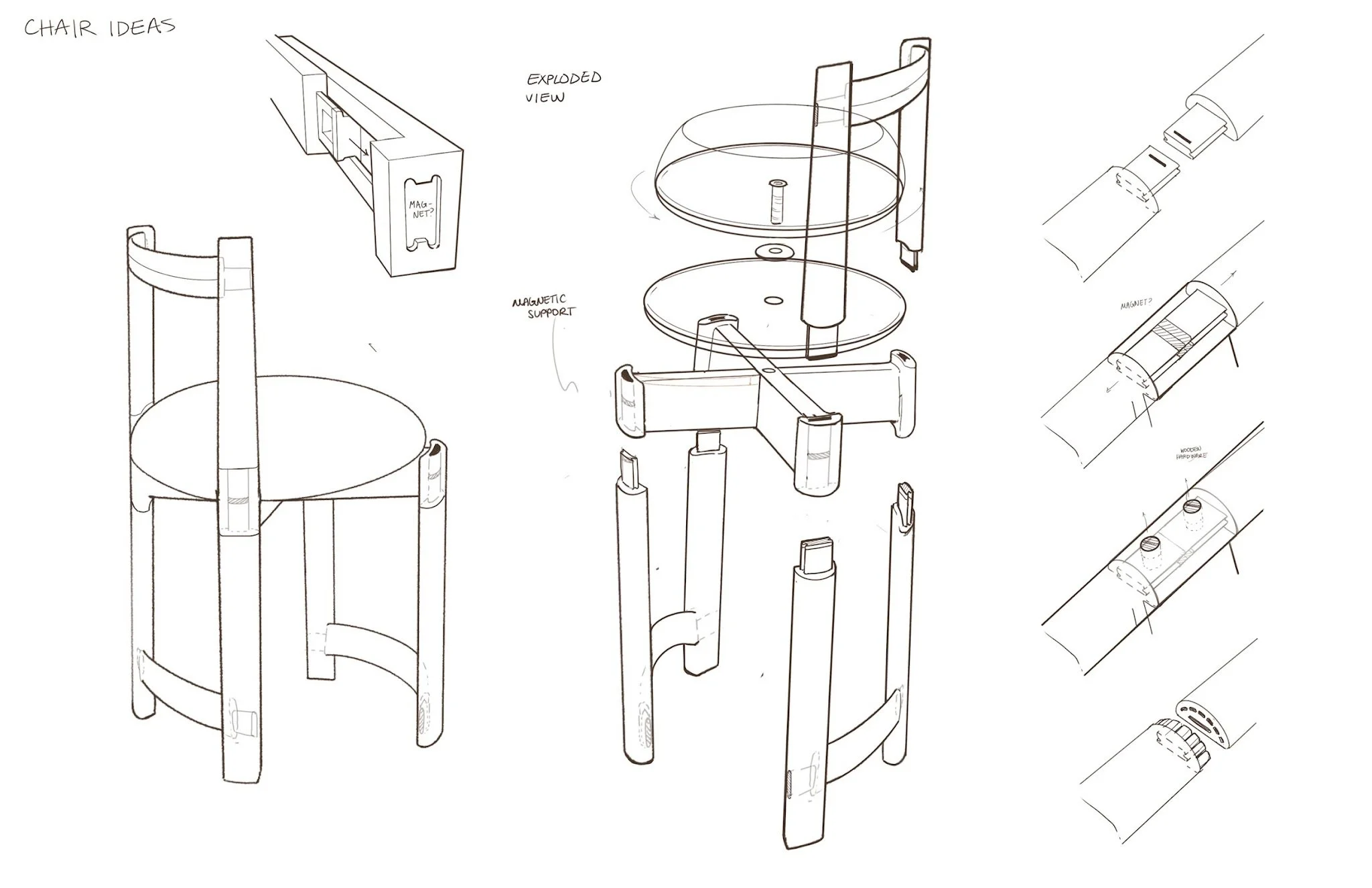 Many concepts were explored to find a solution. Initially, concepts used intuitive joinery to explore methods of stacking.