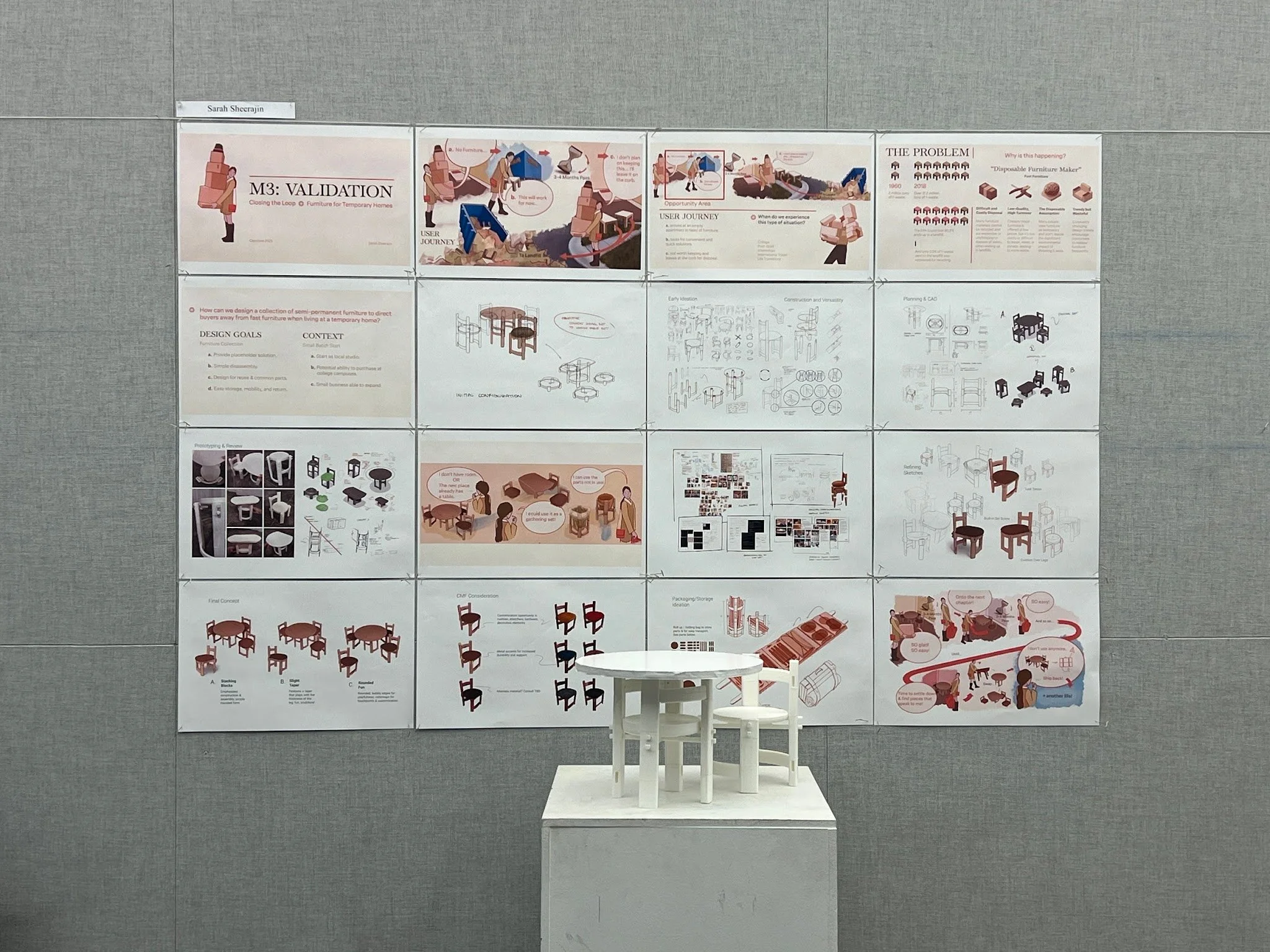 This project reflects my passion for furniture and interior design, and my curiosity for how spaces shape our experiences. Through this Capstone process, I learned the importance of adapting when things don’t go as planned and clarified the values I want to carry into my career. Inspired by both sustainable practices and the challenges faced by young adults moving through life transitions, this work explores how design can respond to mobility and change.