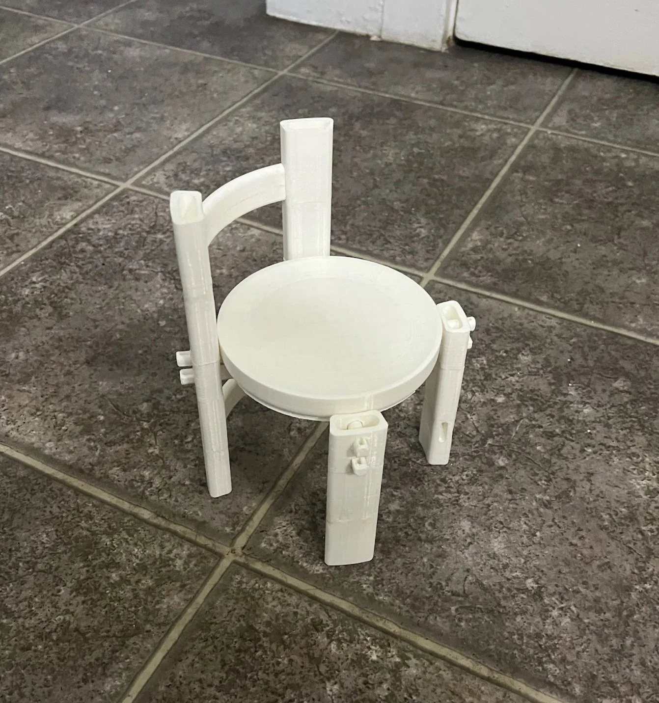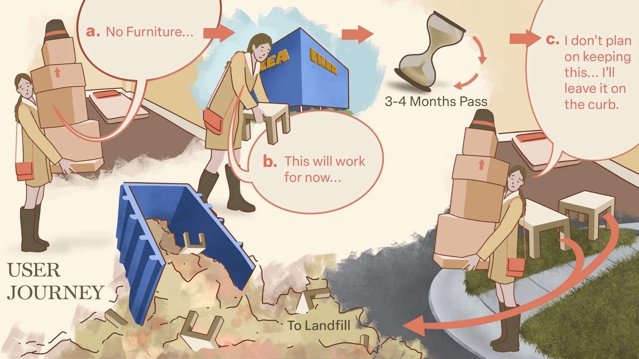 This project was inspired by circular design values and the lifespan of furniture. While not strictly a sustainability project, it grew from my interest in rethinking how furniture is used, moved, and kept out of landfills. A visit to NeoCon in Chicago, where circularity was a central theme, sparked the ideas that shaped the form, branding, and display of this work.